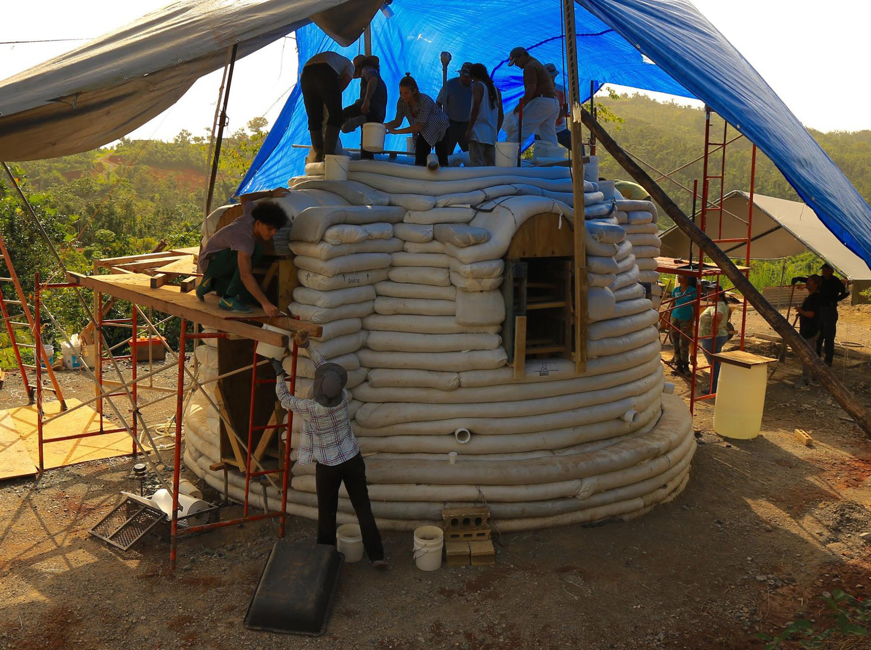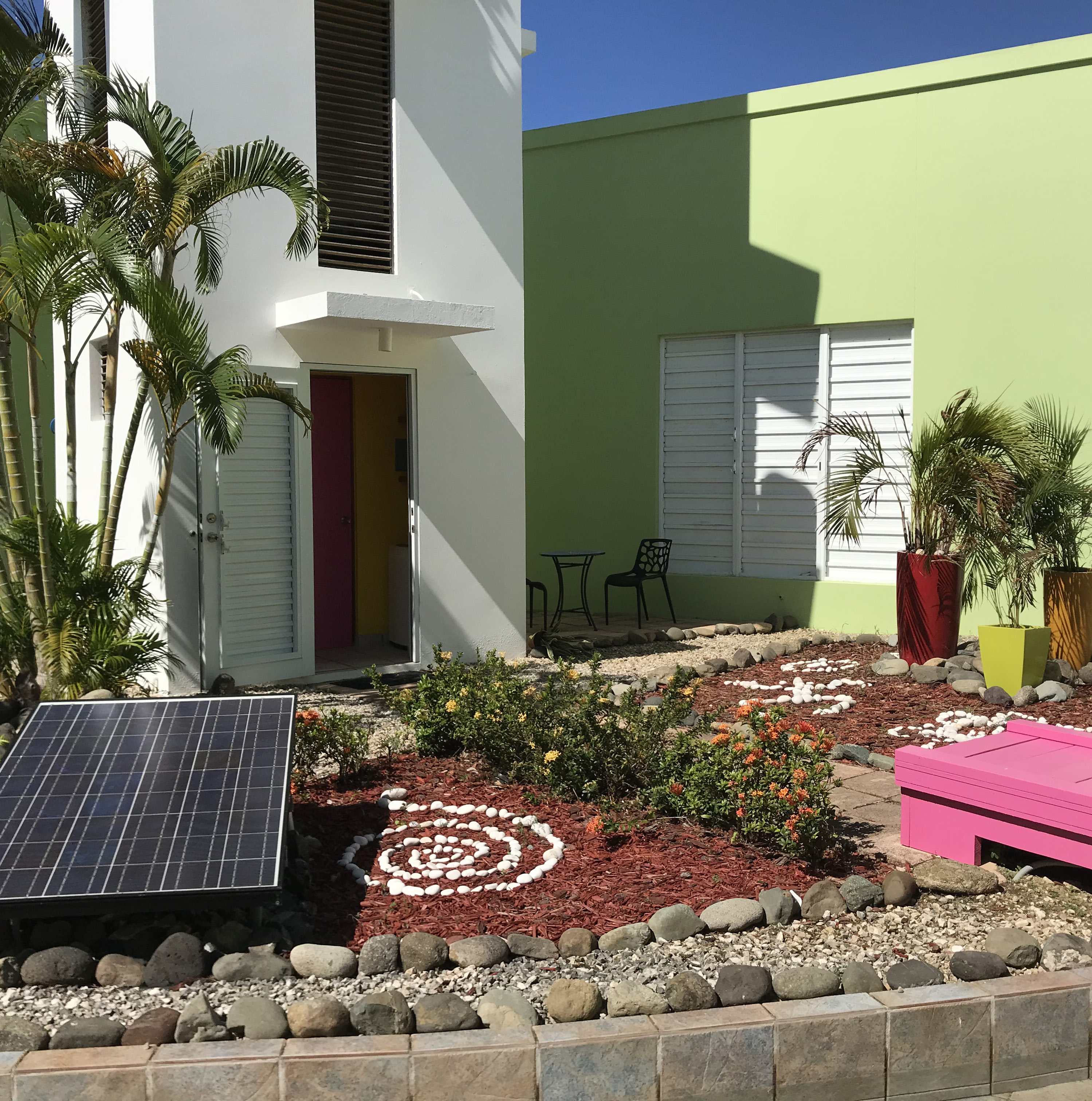 Since the idea to develop Plenitud was born, we were already getting ready for a scenario where climate change and the system’s instability could affect us. Consequently, we began a project to collect rainwater to use for compost, crops, food, and cooking, among other things. We have 2 tanks (5,000 gallons each) that enabled us to help the community. Additionally, we had bought food in bulk prior to the hurricane, such as grains, rice, some spices, which we stored in large buckets.