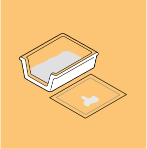 Caja de arena, "pads" o pañales para que las mascotas puedan hacer sus necesidades.