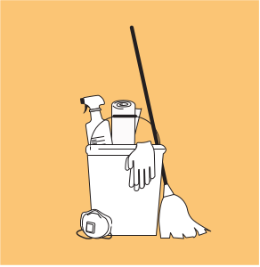 Suministros para limpiar o recoger el área luego del evento: bolsas de basura grandes y resistentes, productos de limpieza ecológicos, mapos, baldes, guantes de goma, gafas de seguridad y mascarillas N-95 para los miembros de la familia.