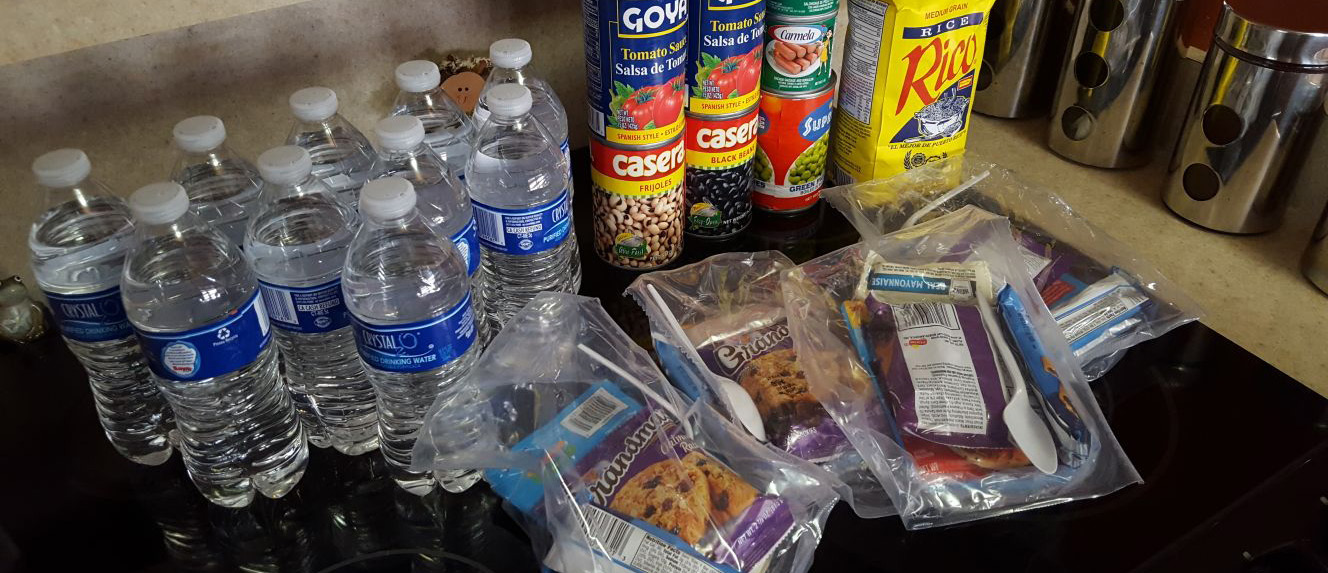 - Incluya 1 galón por día, por persona y agua adicional para las mascotas.