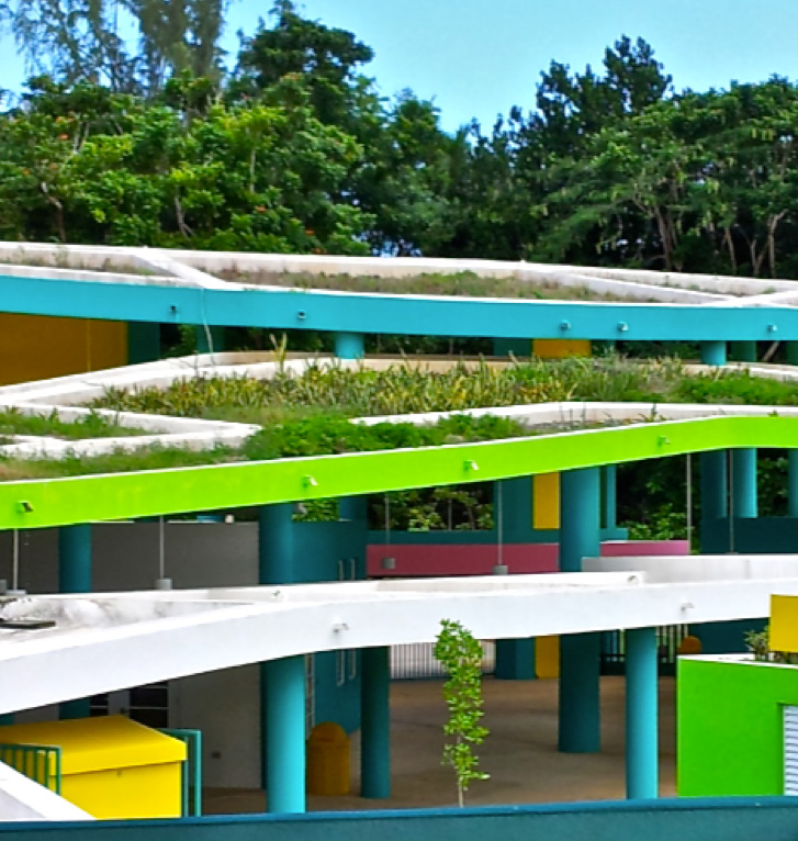 Los techos que están parcial o completamente cubiertos de vegetación y un medio de cultivo mitigan el aumento excesivo de calor y manejan las aguas pluviales.