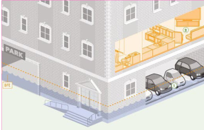 En un edificio residencial, solo se puede utilizar la impermeabilización en seco en los espacios no habitables p. ej. vestíbulos, la oficina de administración del edificio, cuartos multiusos, espacios comerciales o de almacenamiento, etc. Además, esto solo se permite si el piso más bajo del edificio es para uso comercial.