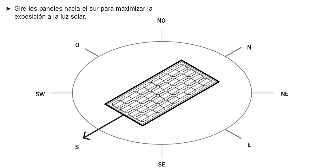 • Gire los paneles hacia el sur para maximizar la exposición a la luz solar.