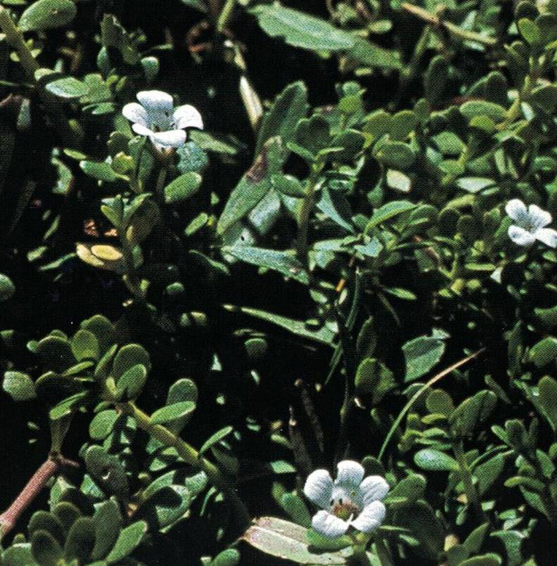 Aquatic (freshwater) succulent with leaves and small white or light blue flower.