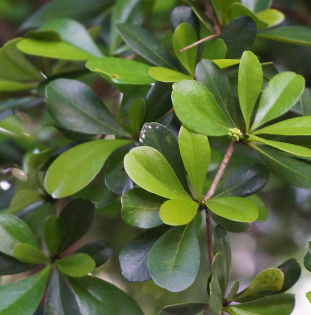 Grows from a shrub to a small tree up to 11 meters in height. The leaves are aromatic when crushed and its flowers are a greenish white color.