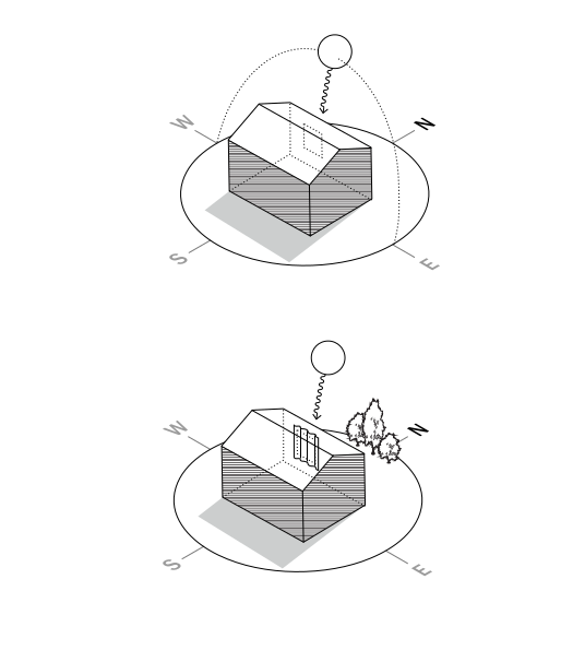 • Outdoor conditions - the sunlight, temperature and wind at the home site.