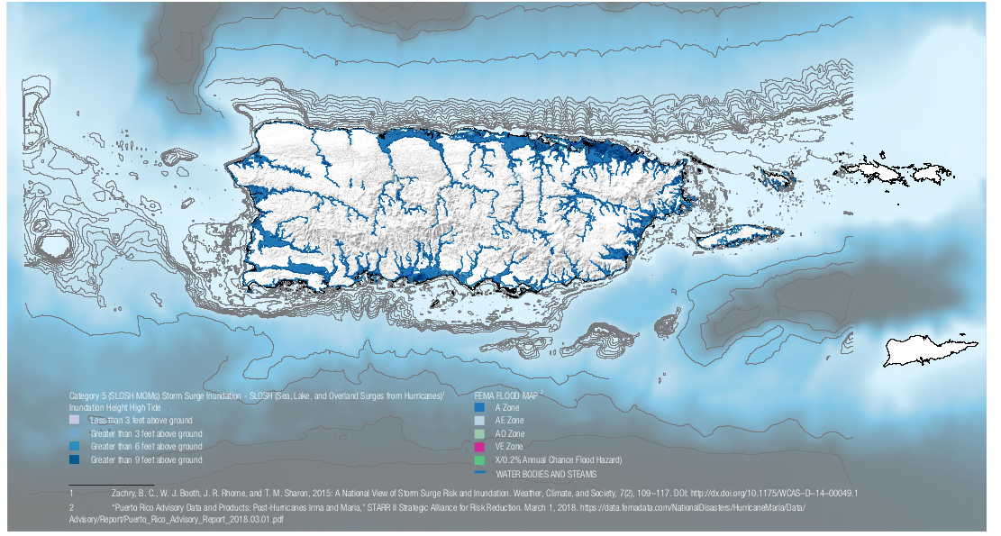 - Además, gran parte de la infraestructura de Puerto Rico está ubicada en áreas costeras, incluyendo los servicios de agua potable y tuberías sanitarias, las estaciones de bombeo, aguas residuales de tratamiento, plantas de energía asociadas a los sistemas de distribución. Considere que todos estos fueron impactados por el huracán María y afectó la habitabilidad de la vivienda y la calidad de vida de miles de personas