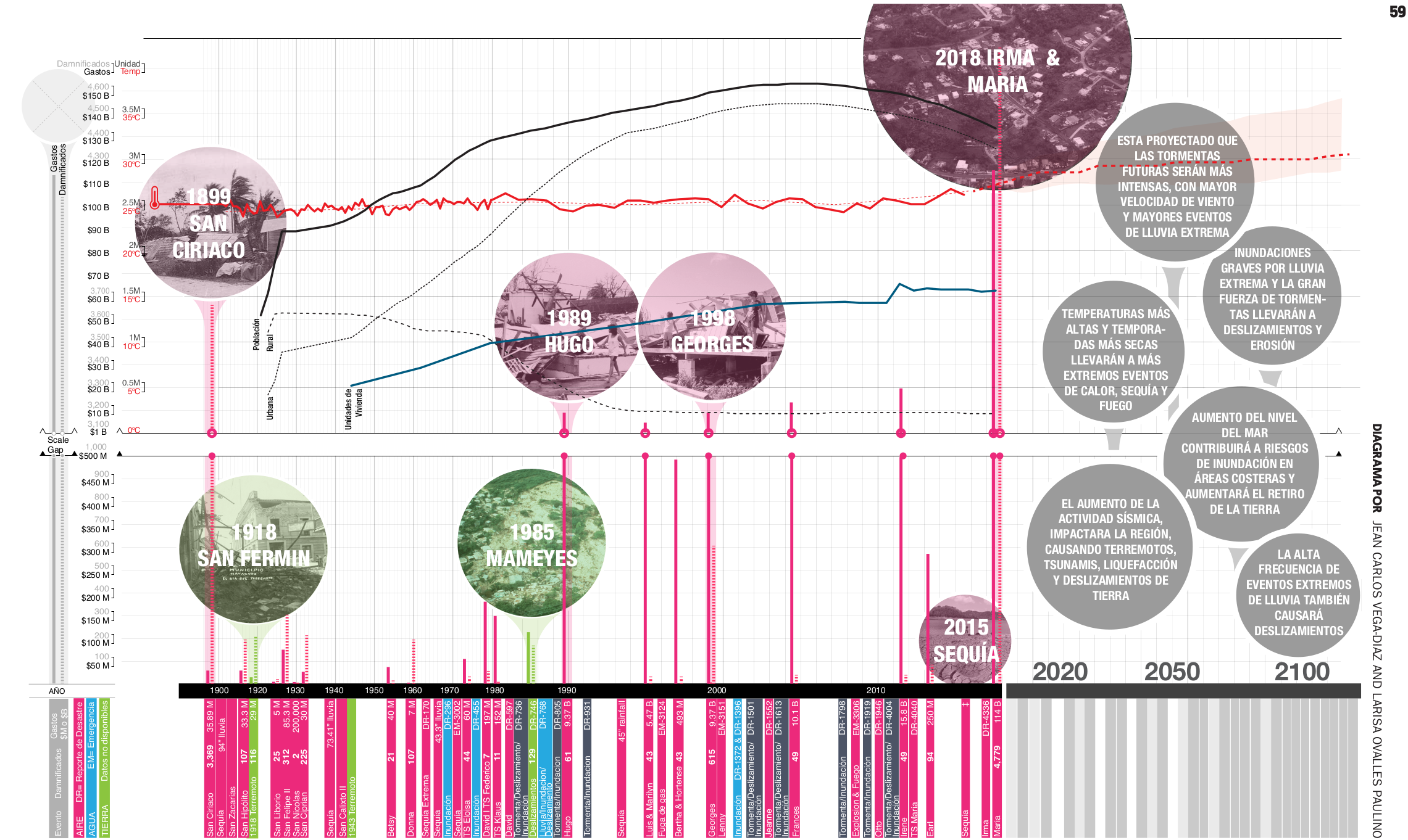 Conocer los patrones de uso del terreno y el desarrollo de los ambientes construidos es crítico para determinar la exposición al riesgo; pero los procesos sociopolíticos y económicos también influyen en la exposición desigual al peligro y el acceso discriminatorio a la asistencia. La siguiente retrospectiva comparativa analiza las lecciones aprendidas de ocho eventos históricos principales. Esta también ayuda a comprender mejor el panorama actual y futuro de la isla ante los desastres, en especial cómo estos eventos han llevado a cambios en distintos ámbitos, desde cómo las personas y comunidades se preparan y responden a los desastres, hasta la manera en que estos desastres han originado cambios en las políticas gubernamentales a distintos niveles. Estos eventos destacan cómo las personas ven, entienden y recuerdan los riesgos, como una suerte de mapa de la memoria colectiva de Puerto Rico en cuanto a los desastres naturales.