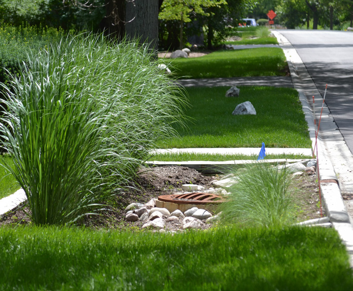 Los drenajes sostenibles y jardines infiltrantes reciben agua y la filtran por diferentes capas de substrato y vegetación. Además, ayudan a absorber el agua de lluvia. Estos pueden diseñarse para manejar una cantidad específica de lluvia.