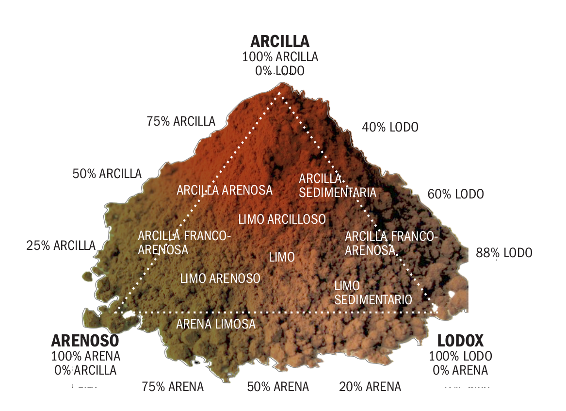 La consistencia de los suelos ocurre naturalmente como una mezcla de los distintos tipos, como se muestra a la derecha.