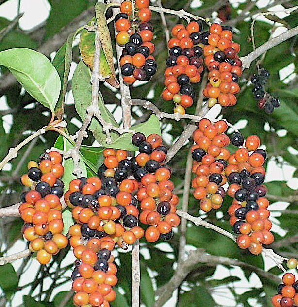 Árbol pequeño a mediano con verde hojas dispuestas alternativamente, y tiene fruta que va de naranja a rojo cuando está maduro.