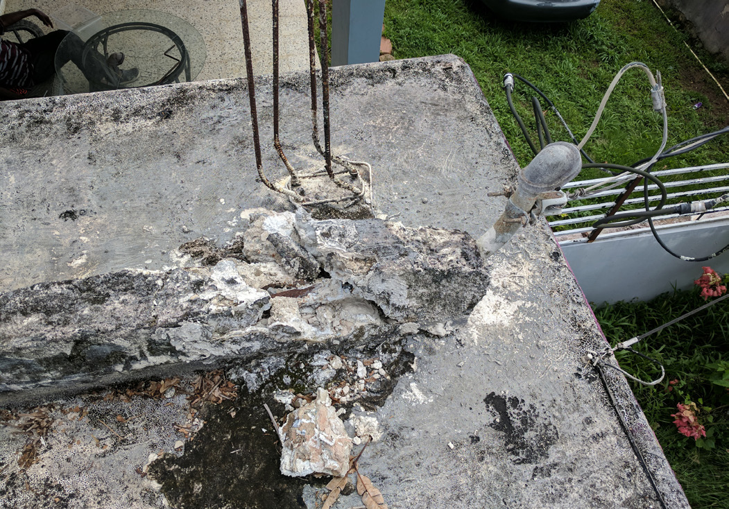 - Mezcla de hormigónincorrecta, varillas inadecuadas y/o expuestas en los cimientos de hormigón. (El diseño inadecuado de los cimientos de hormigón puede conllevar a la formación de grietas y desprendimientos peligrosos durante una tormenta o evento sísmico).