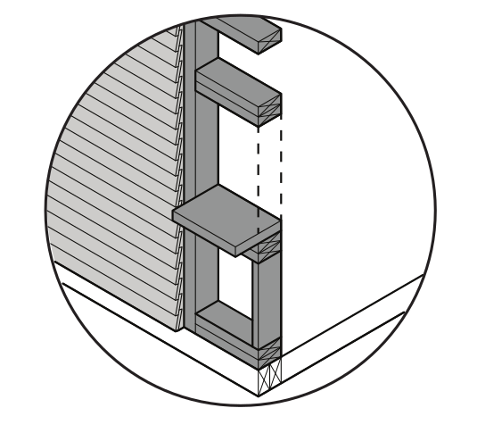 - Se recomienda colocar travesaños cortos (jack studs o trimmer studs) verticales dobles y cabezales y largueros horizontales en todos los lados, por lo general 2 pies x 4 pies.