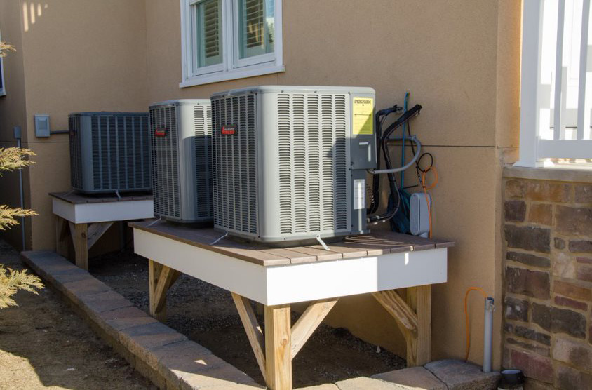 - Eleve los sistemas interiores y exteriores, tales como los sistemas mecánicos de conducción de aire, los sistemas eléctricos y la plomería, por lo menos 1 pie por encima del DFE para asegurar que estos continúen funcionando durante e inmediatamente después de la inundación.