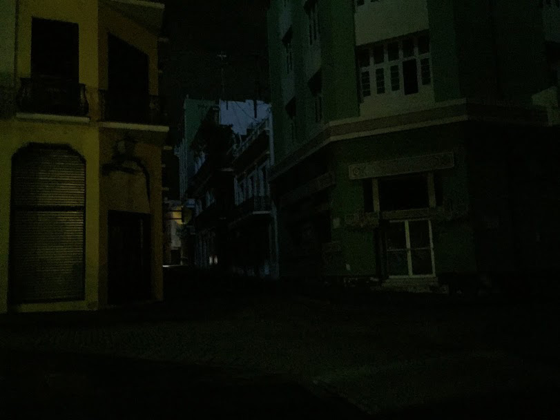 Viejo San Juan en la oscuridad en la noche después del huracán María