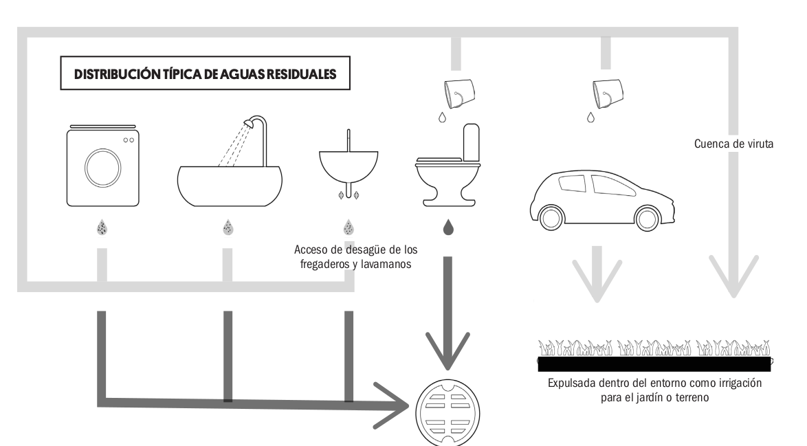 - Opción #1 - Adaptar su sistema de plomería para utilizar aguas residuales. El agua de los fregaderos necesita ser filtrada.