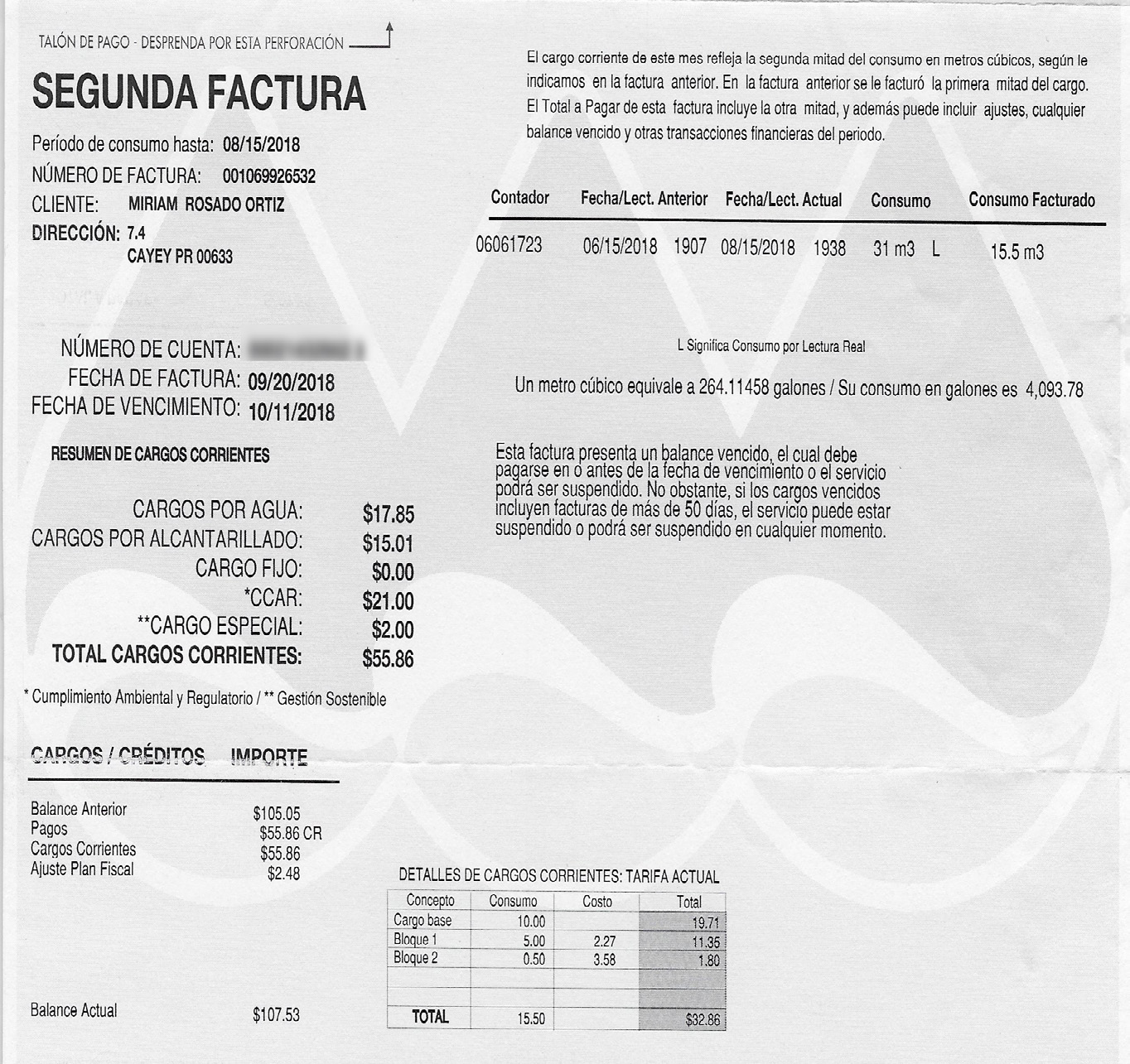 Analice su factura de agua para ver cuánta agua está usando y cuánto está ahorrando mientras conserva. Trate de llegar muy por debajo del promedio de 62.5 galones al día por persona establecido por la Autoridad de Acueducto y Alcantarillados (AAA).