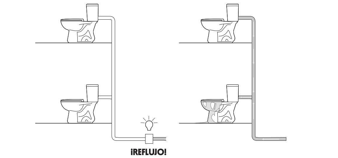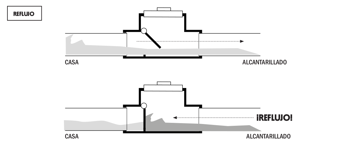 - El reflujo de aguas negras ocurre cuando el agua fluye por las tuberías del alcantarillado en dirección opuesta y entran nuevamente al hogar o edificio, contaminando los espacios y el agua potable.