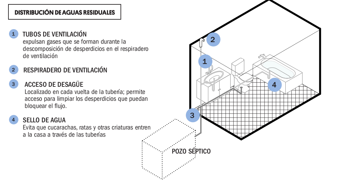 - Conecte todos los elementos de plomería a una tubería que aleje las aguas negras del hogar.